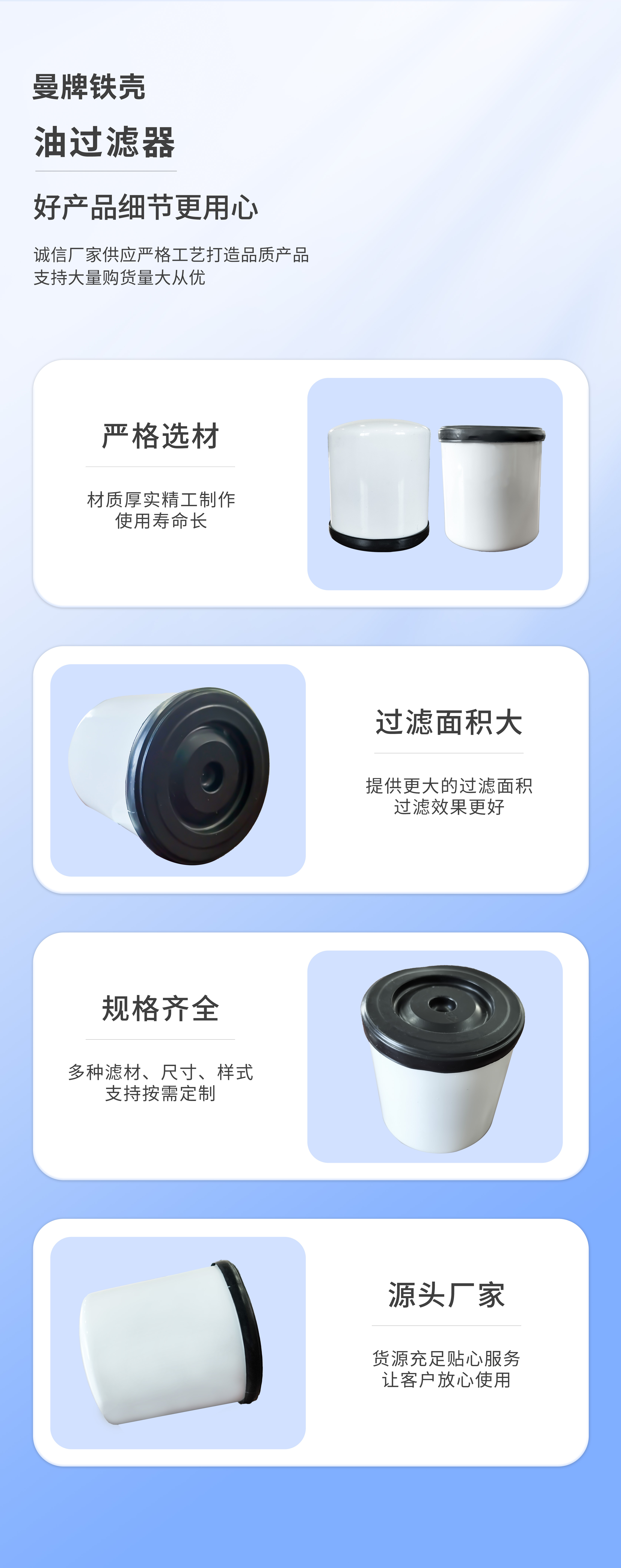 曼牌濾清器廣泛應用在乘用車、商用車、工程機械和工業領域,主要負責清除空氣中的微粒雜質的裝置。其主要作用是濾除將要進入汽缸的空氣中有害雜質,以減少汽缸、活塞、活塞環、氣門及氣門座的早期磨損和氧化。