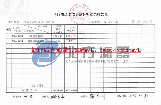 PS:本公司保證設(shè)備處理效果的真實,熱忱歡迎新老客戶攜帶含油廢水樣液前來我司進行油水分離機的現(xiàn)場試驗。嚴禁同行不經(jīng)允許盜用本公司圖片,否則后果自負。